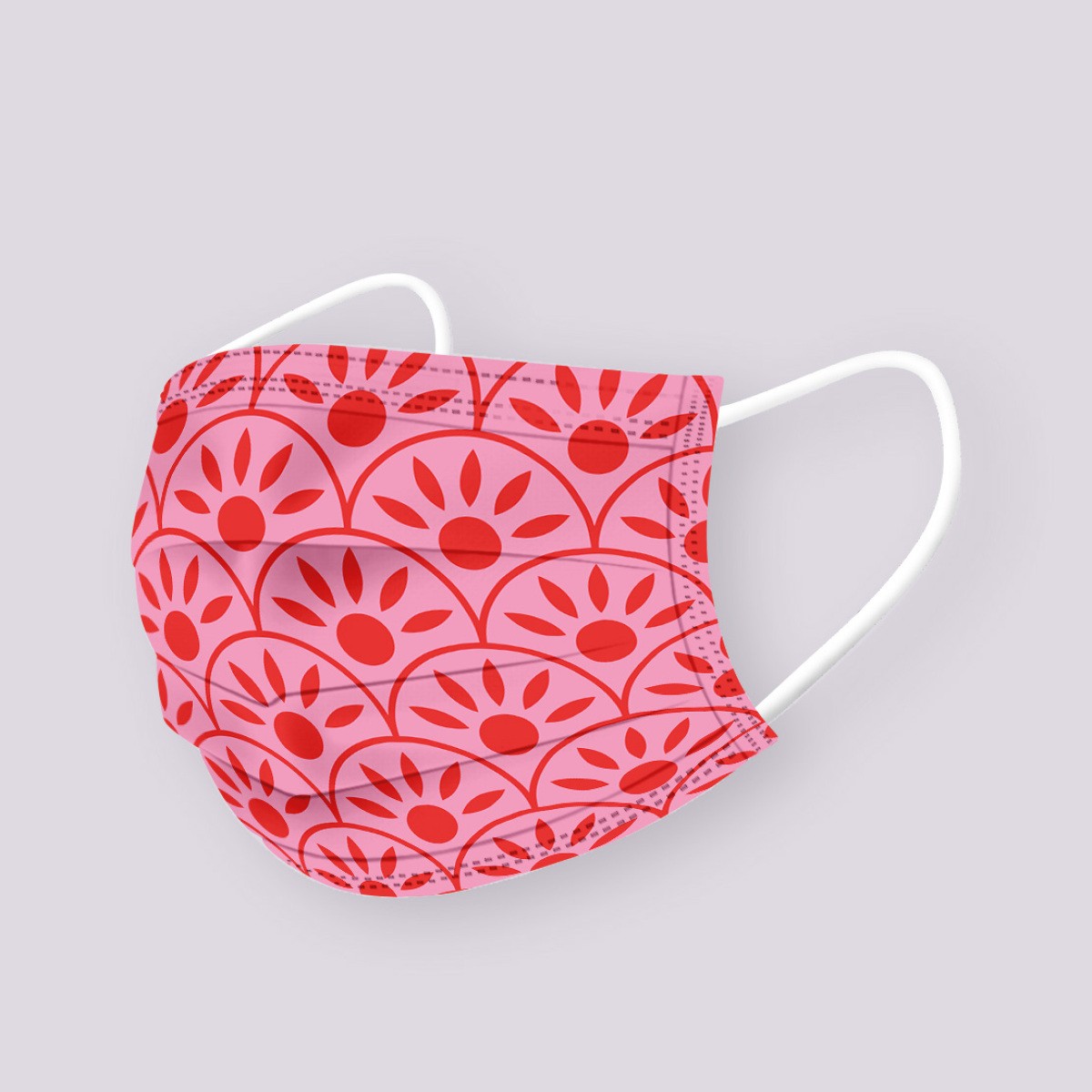 Esquire Maske Tek Kullanımlık Yetişkin Için Pembe Çiçek Desenli