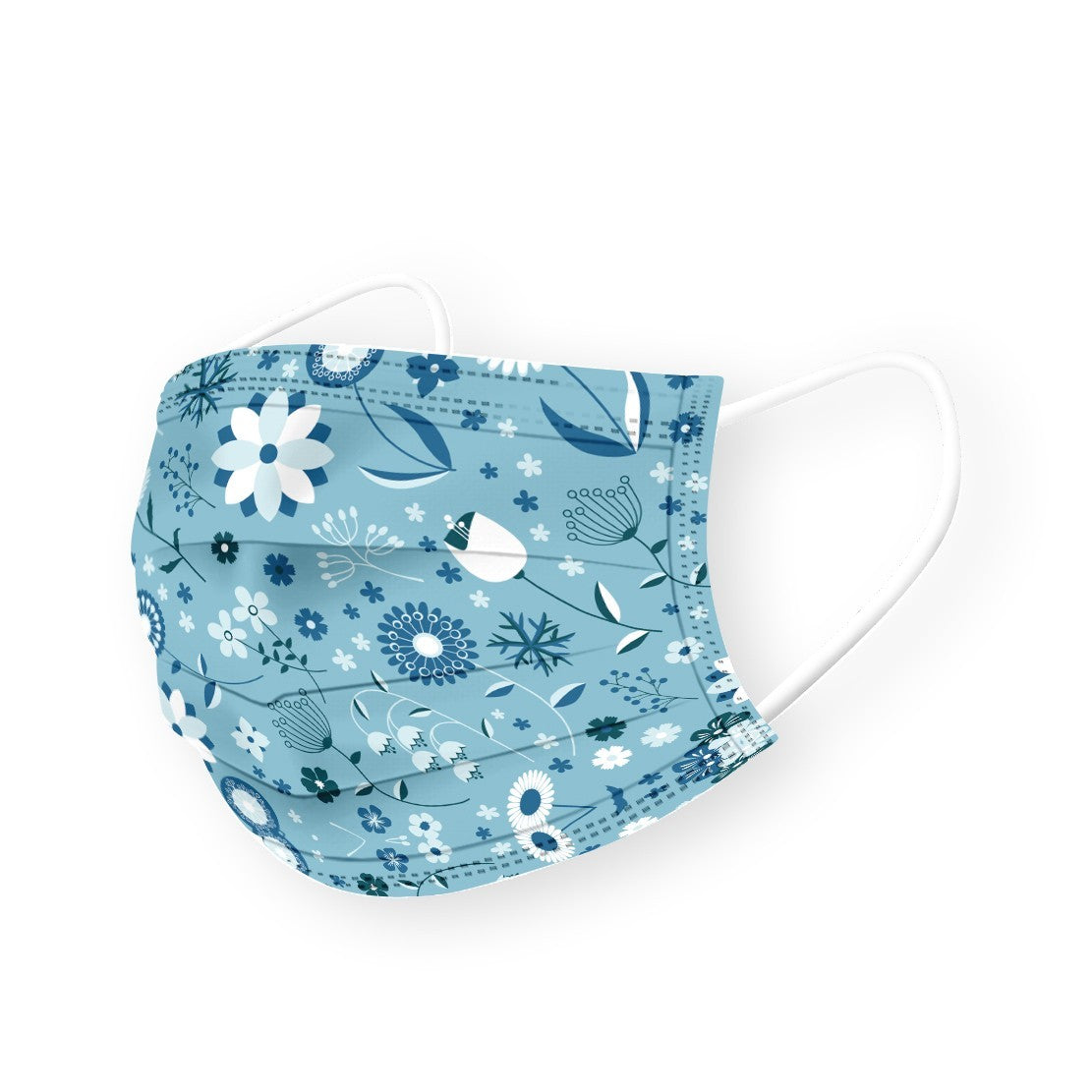 Maske Tek Kullanımlık Yetişkin İçin Flora Desenli Mavi