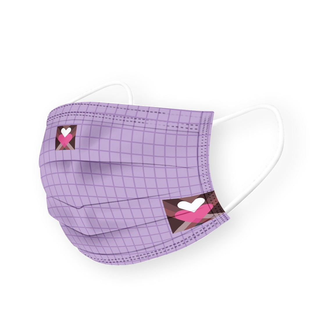 Maske Tek Kullanımlık Yetişkin İçin Kalp Desenli Mor