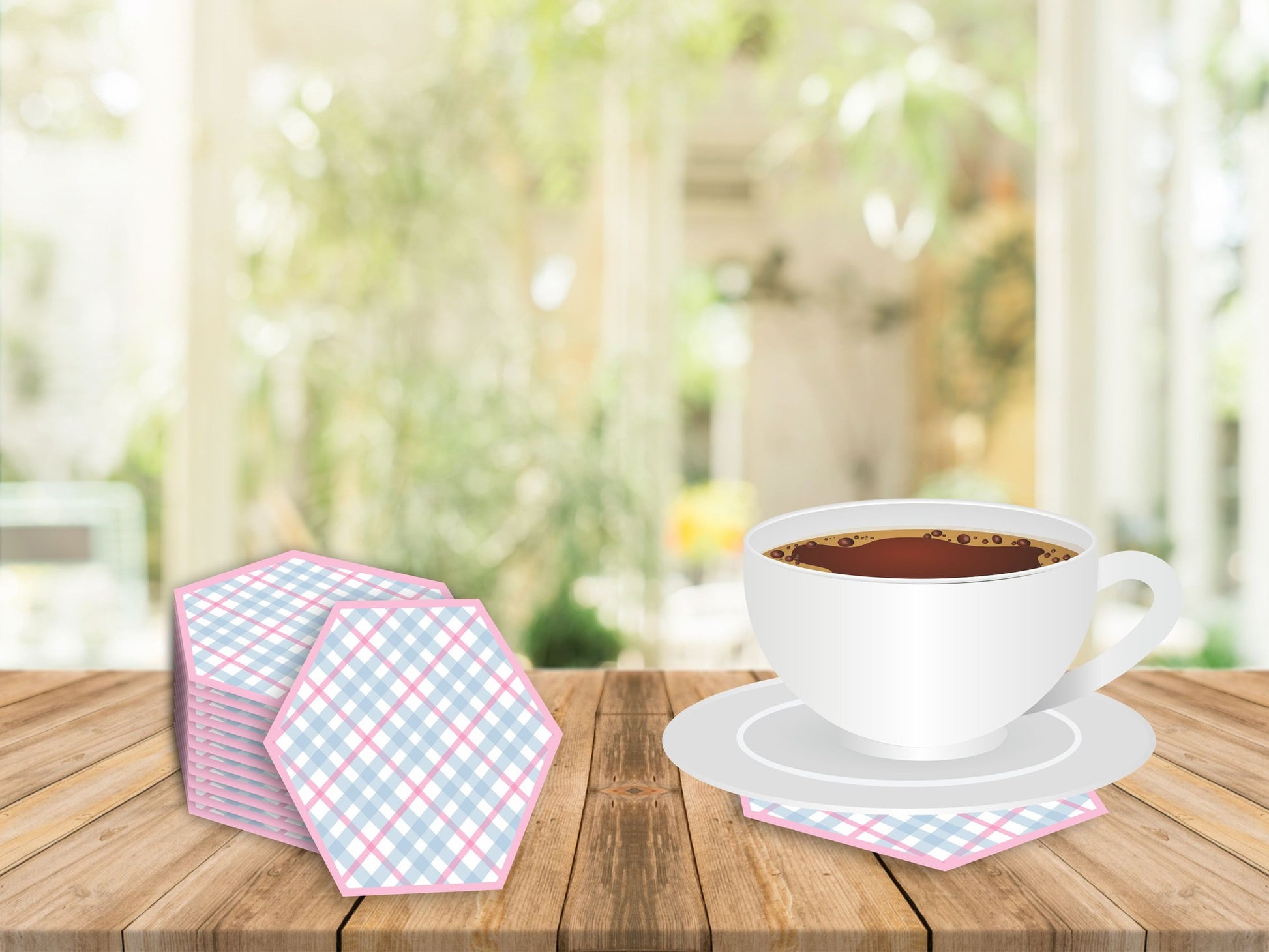 Tek Kullanımlık Altıgen Pötikare Desenli Bardak Altlığı