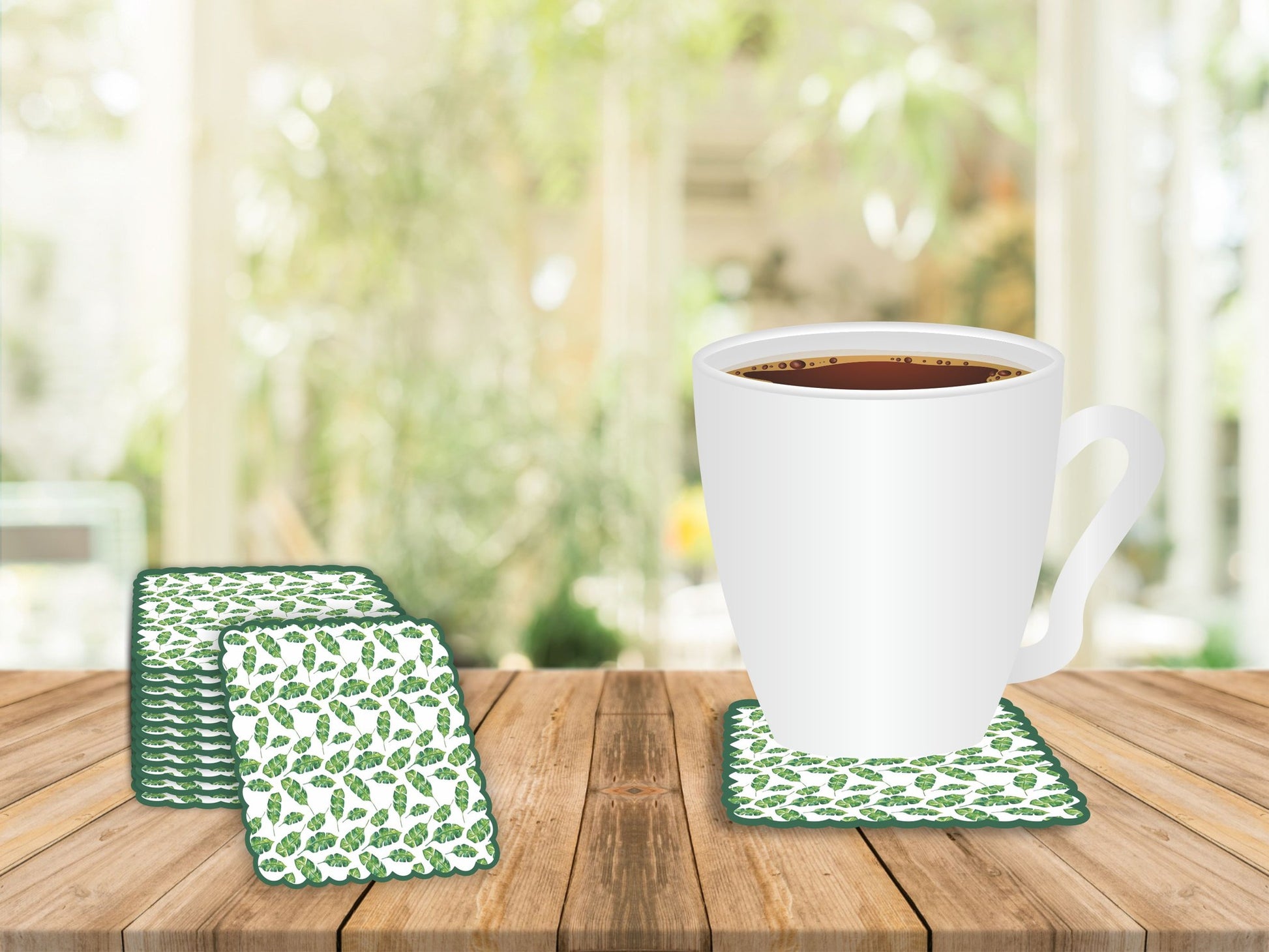 Tek Kullanımlık Kare Yaprak Desenli Bardak Altlığı